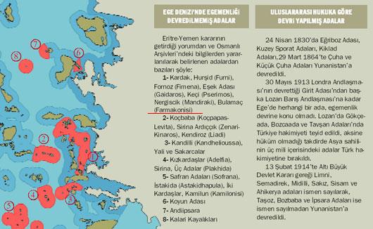 Σύμφωνα λοιπόν με τον Ümit Özdağ, τα νησιά Kouyn, Hurşıt, Fornoz, Eşek, Nergizçik, Bulamaç, Kalolimnos, Keçi, Sakarcılar Koçbaba, Ardacık, δηλαδή τα νησιά, Οινούσσες, Φίμενα, Φούρνοι, Αγαθονήσι, Άρκη, Φαρμακονήσι, Καλόλημνος, Πλατιά, Κυρά Παναγιά, Γυαλί, Σύρνα και τα ανήκοντα στην ανατολική Μεσόγειο, νότια της Κρήτης, (εκεί που έχουν ανακαλυφθεί τα τεράστια ενεργειακά κοιτάσματα), Gavdos, Dhia, Dionısades, Gaidhouronisi, Koufonisi, δηλαδή Γαύδος, Δία, Διονισιάδες, Γαιδουρονήσι, Κουφονήσι, κατέχονται παράνομα από την Ελλάδα. Μάλιστα ο Ümit Özdağ ισχυρίζεται ότι η τουρκική κυβέρνηση έχει στα χέρια της πρόσφατες μελέτες που αποδεικνύουν την παράνομη ελληνική κατοχή αυτών των νησιών και ότι τα νησιά αυτά ανήκουν δικαιωματικά στην Τουρκία. Απευθυνόμενος δε στον Τούρκο πρωθυπουργό Αχμέτ Νταβούτογλου, ζητά να μάθει τι ενέργειες έχει κάνει στις συνομιλίες του με τους Έλληνες για να διεκδικήσει την τουρκική κυριαρχία αυτών των νησιών.